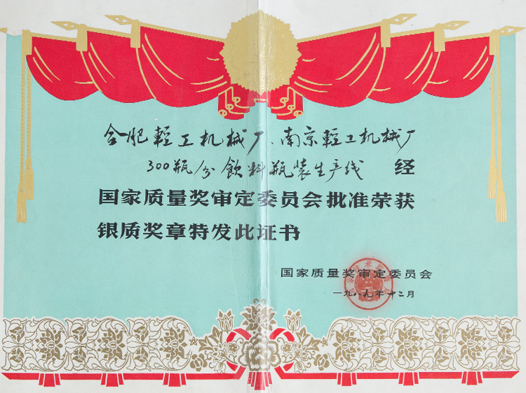 国家质量奖认定证书