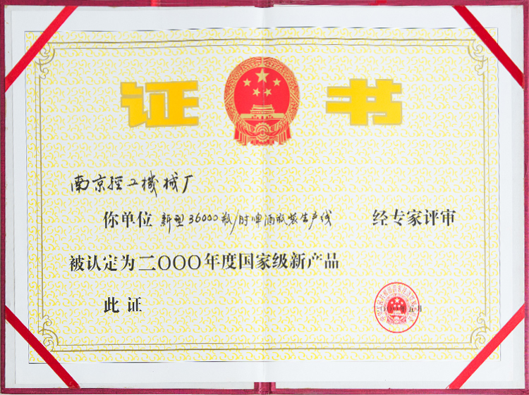 2000年国家级新产品企业证书