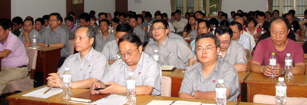 董厂长首先作了题为《振奋精神 真抓实干 为圆满完成全年目标任务而努力奋斗》的工作报告,他从积极开拓市场,产品订货成绩喜人;科学组织生产,合同履约率有所提升;坚持科学创新,企业技术不断进步;狠抓质量管理,产品质量不断提升;加强基础管理,管理水平不断提升;新厂建设有序推进,取得新的进展;切实做好安保工作,确保企业安全生产;开展党的群众路线教育实践活动,为企业改革发展保驾护航等八方面总结了上半年的工作。董厂长分析了下半年的经济形势,并从紧紧把握国内市场;加大开拓国际市场力度;产品与技术;生产;质量和服务;新厂建设;老厂区园区打造;安全生产;党群工作;改革改制等十个方面对下半年的工作思路和要点做了部署。今年是企业十分重要也是最困难的一年,董厂长提出企业要不断克服市场竞争的压力,克服企业因新厂建设等因素带来的巨大的经济压力,在企业最为关键的转型期,董厂长要求大家要齐心协力,做好各项工作,抓住机遇,克服困难,圆满完成全年目标任务。