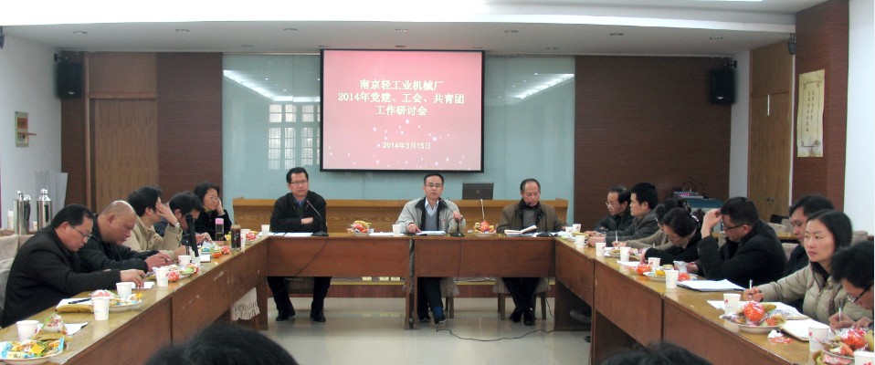 3月15日上午,我厂组织召开了2014年党建、工会、共青团工作研讨会。参加会议的有厂党委史书记、朱书记,全厂各党支部的书记、厂纪委、纪检监察负责同志、厂工会委员、各分工会主席、厂团委委员及团支部书记等共三十多人。