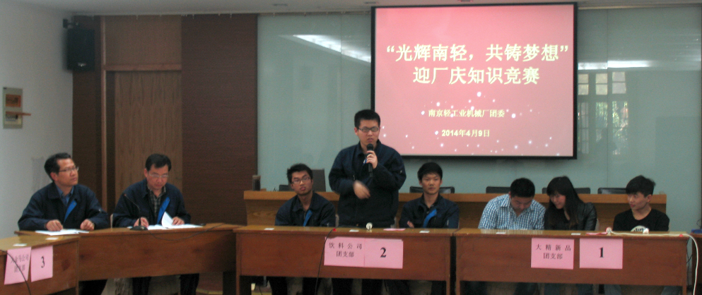 今年,我们迎来了南京轻工业机械厂建厂45周年,全厂组织开展了迎厂庆系列文化活动。作为迎厂庆系列文化活动之一,“光辉南轻,共铸梦想”迎厂庆45周年知识竞赛以企业历史沿革、企业质量管理、企业产品知识、安全生产知识、企业文化理念等知识为竞赛内容。此次知识竞赛活动得到了厂领导,以及各部门党政工领导的大力支持和帮助。