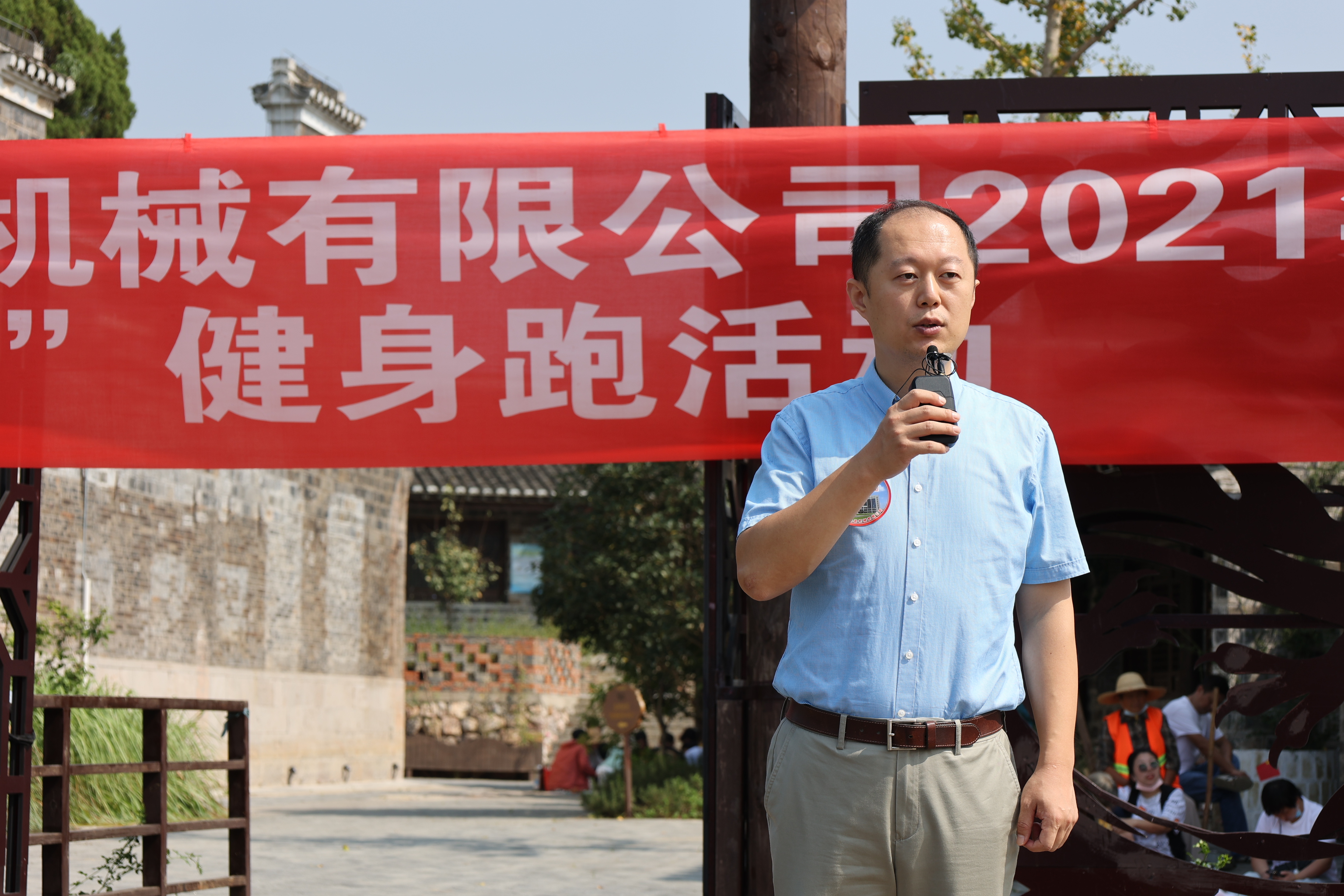 南京轻机包装机械有限公司总经理孙琦为本次“迎国庆”健身跑活动致词并宣布活动开始。