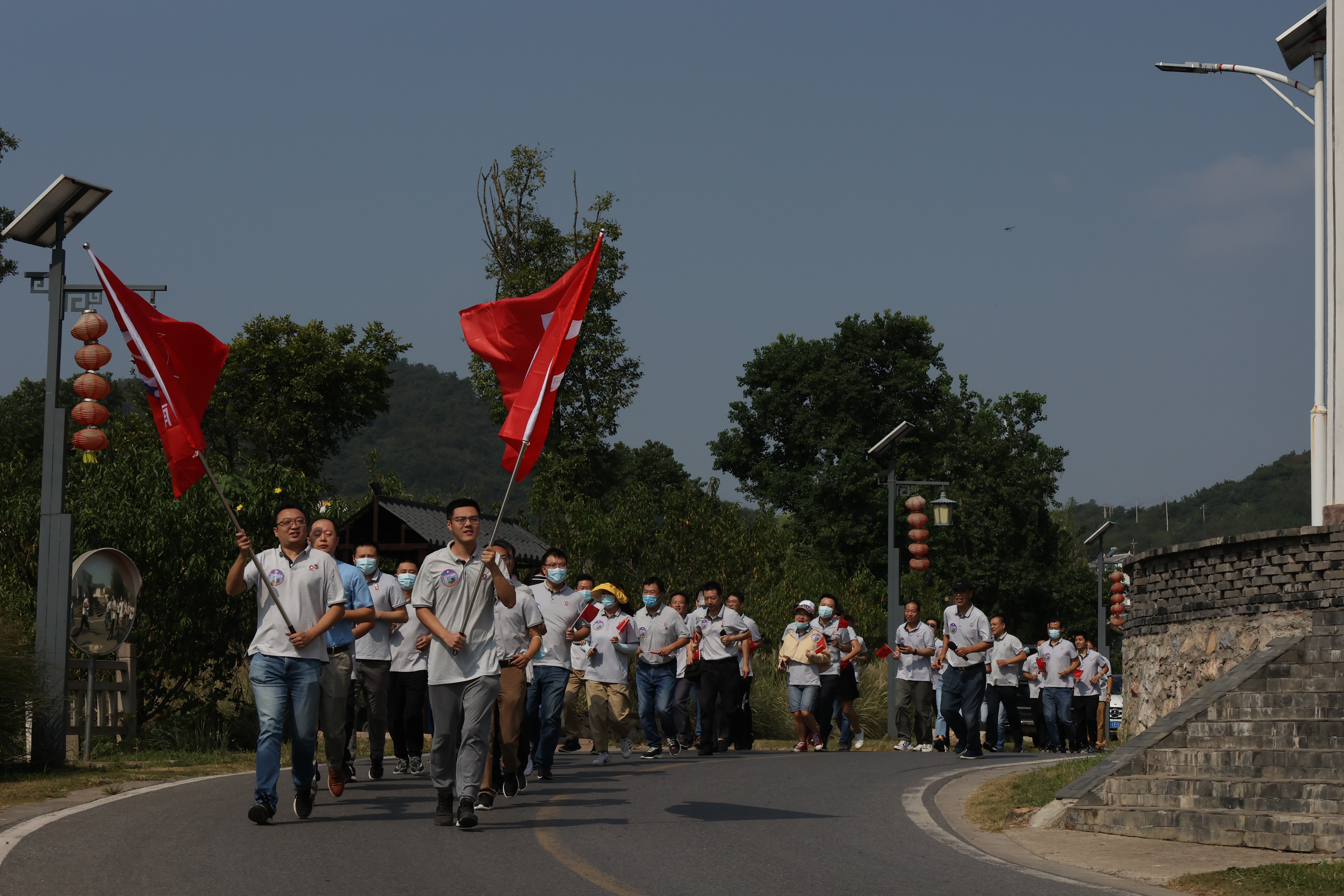 随着开跑令响起,全体人员在两名手持“中国建材”和“南轻包装”旗帜的旗手引导下,开始了激情乐跑之旅。选手们个个精神饱满,喊着整齐的口号,满怀信心奔向终点,体现了一种团队合作和奋发向上、同舟共济的“南轻”精神。随后,大家还饶有兴趣的参观了江宁红色教育基地——佘村村史展览馆。