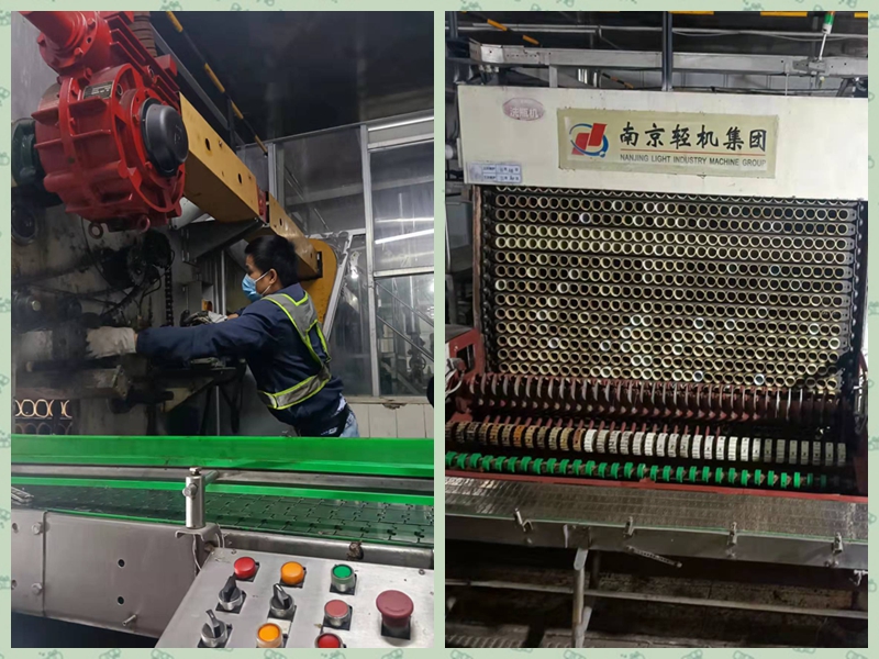 南轻职工在东莞仙津食品有限公司现场调试24000瓶/小时洗瓶机
