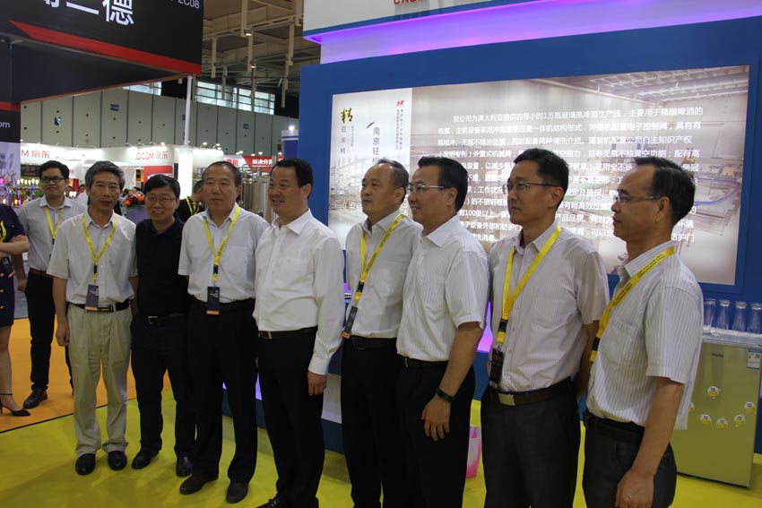 展会期间,彭总一行在中国联合装备集团副总经理、南京轻机包装机械有限公司董事长杨孝民的陪同下赴南京轻机包装机械有限公司调研。参观了生产车间,听取了工作汇报,彭总对南轻以往在啤酒饮料业方面做出的成绩及影响给予了高度的评价,指出南轻决不能在困难面前低头,要有搞好国有企业的信心和决心,集团会全力支持南轻的生存和发展。并寄语南轻人要一步一个脚印,要加大技术开发和市场开拓,为中国啤酒饮料业的振兴与发展做出更大的贡献!